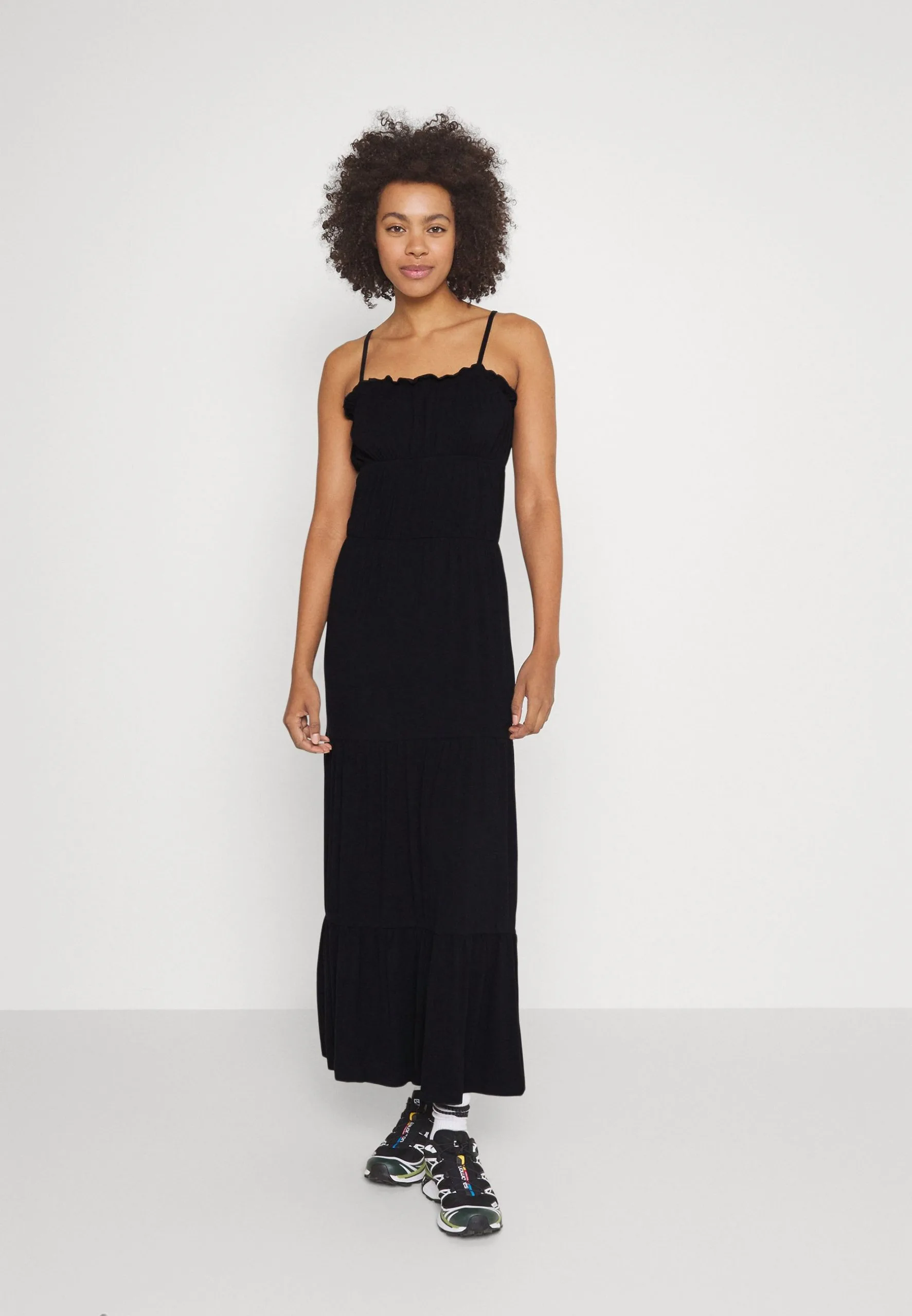 Even&Odd Maxi Dress Tiered Skirt – Robe Longue – Black